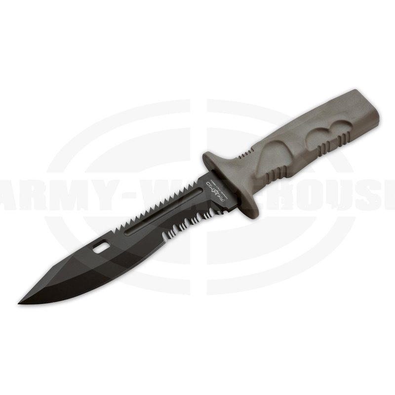 Als militärisches Einsatz- und Überlebensmesser wurde das Leonida konzipiert. Die multifunktionale Klinge aus N690 mit glatter Schneide, Wellenschliffanteil und Rückensäge ist das passende Werkzeug für alle (Über-) Lebenslagen. Die stabile erdfarbene Kunststoffscheide sitzt in einem MOLLE-kompatiblen Cordurasystem in Multicam und bietet zusätzlich einen Drahtschneider und eine diamatbeschichtete Schärffläche. Der Forprenegriff des Messers liegt auch bei Kälte angenehm in der Hand und gewährleistet einen sicheren Griff.