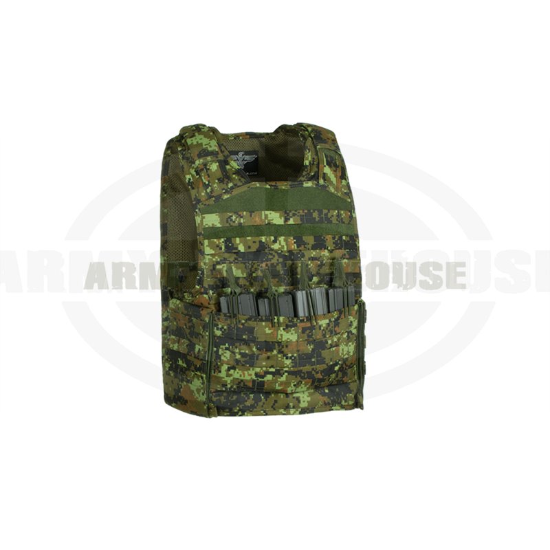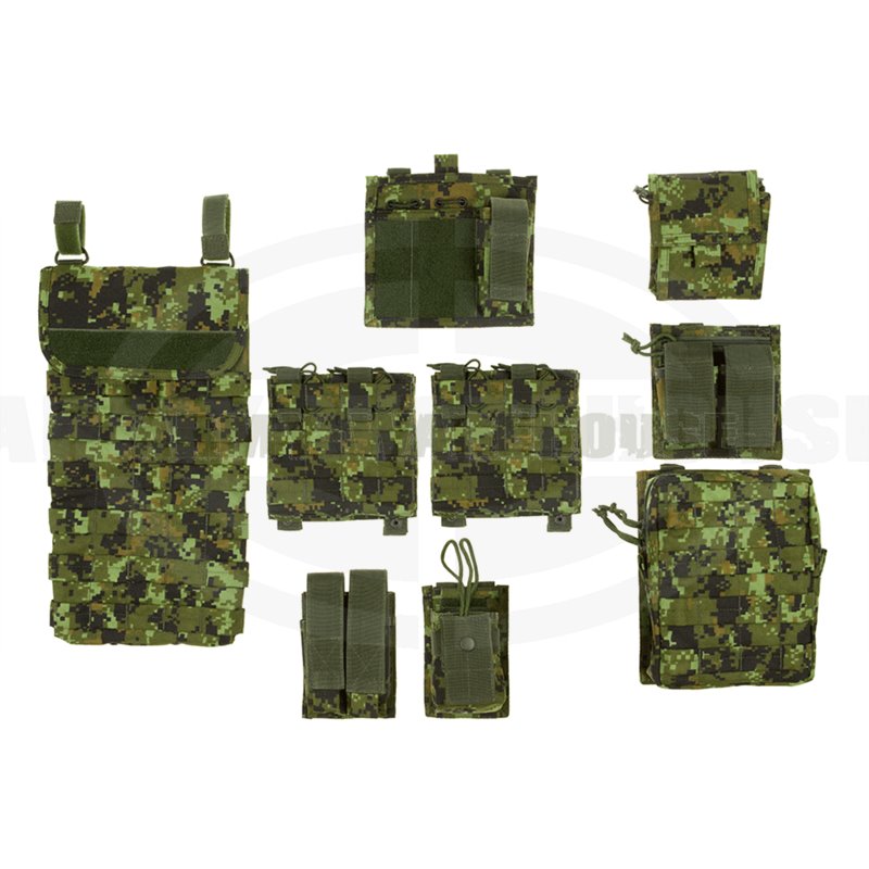 Sehr vielseitiger und komplett mit Taschen ausgestatteter MOLLE Plattenträger aus 600 Denier Nylon für eine grosse Bandbreite an Einsatzmöglichkeiten. Folgende MOLLE Taschen werden mitgeliefert: